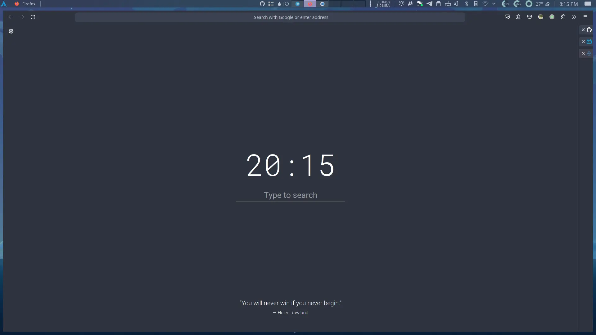 众所周知,firefox 允许加载外部 css 来进行定制化。如果你自己 css 能力比较强而且时间充裕可以按照官方文档来自己定制。我并没有自己花太多时间去具体设计,而是选择在 Firefox-Elegant-NordTheme 基础上进行修改,我认为他的调色很符合我的审美。
