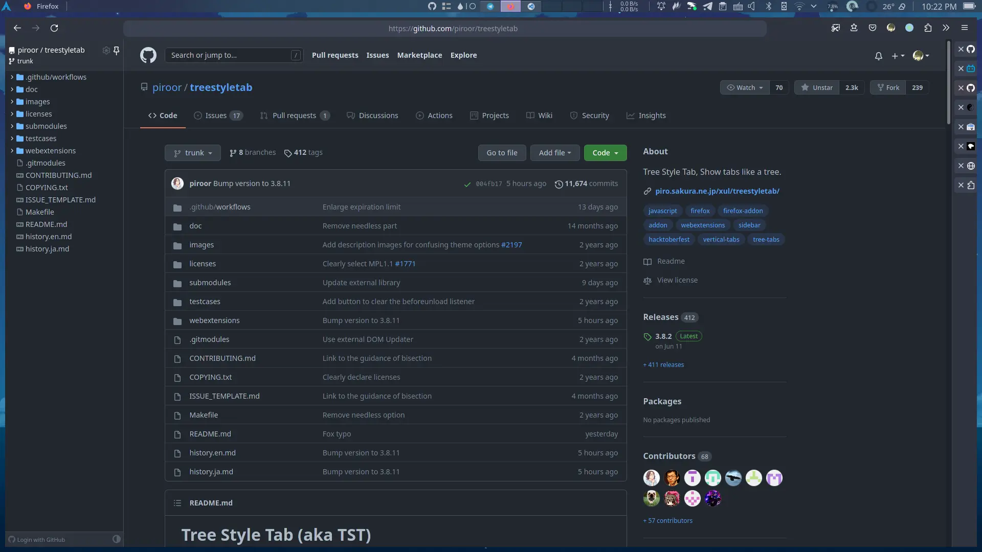 可以明显发现标签栏的高度实在是有点过了,而且右边的留空极其难看,我本身是 treestyletab 用户,于是准备直接采用垂直标签栏。